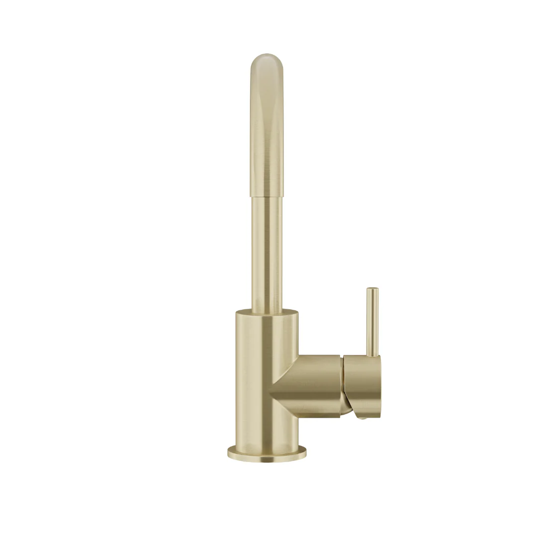 De gouden wastafelmengkraan met draaibare uitloop is gegarandeerd een tijdloze aanvulling voor je wastafel door de draaibare uitloop én het minimalistische ontwerp. De bovenzijde van de wastafelkraan is eenvoudig te draaien waardoor je de wastafel op een efficiënte manier schoon kunt houden. Voor het mengen van de temperatuur gebruik je de mengkraan die zich aan de zijde van de kraan bevindt, ook stel je hiermee de kracht van de waterstraal in.