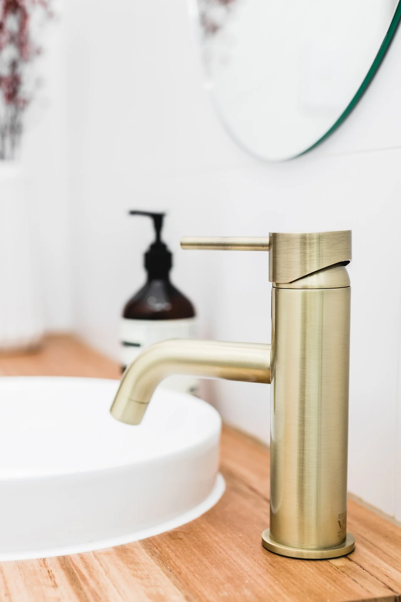 Een alternatief voor de wastafelkraan met gebogen uitloop is de gouden wastafelmengkraan rond met rechte uitloop.
