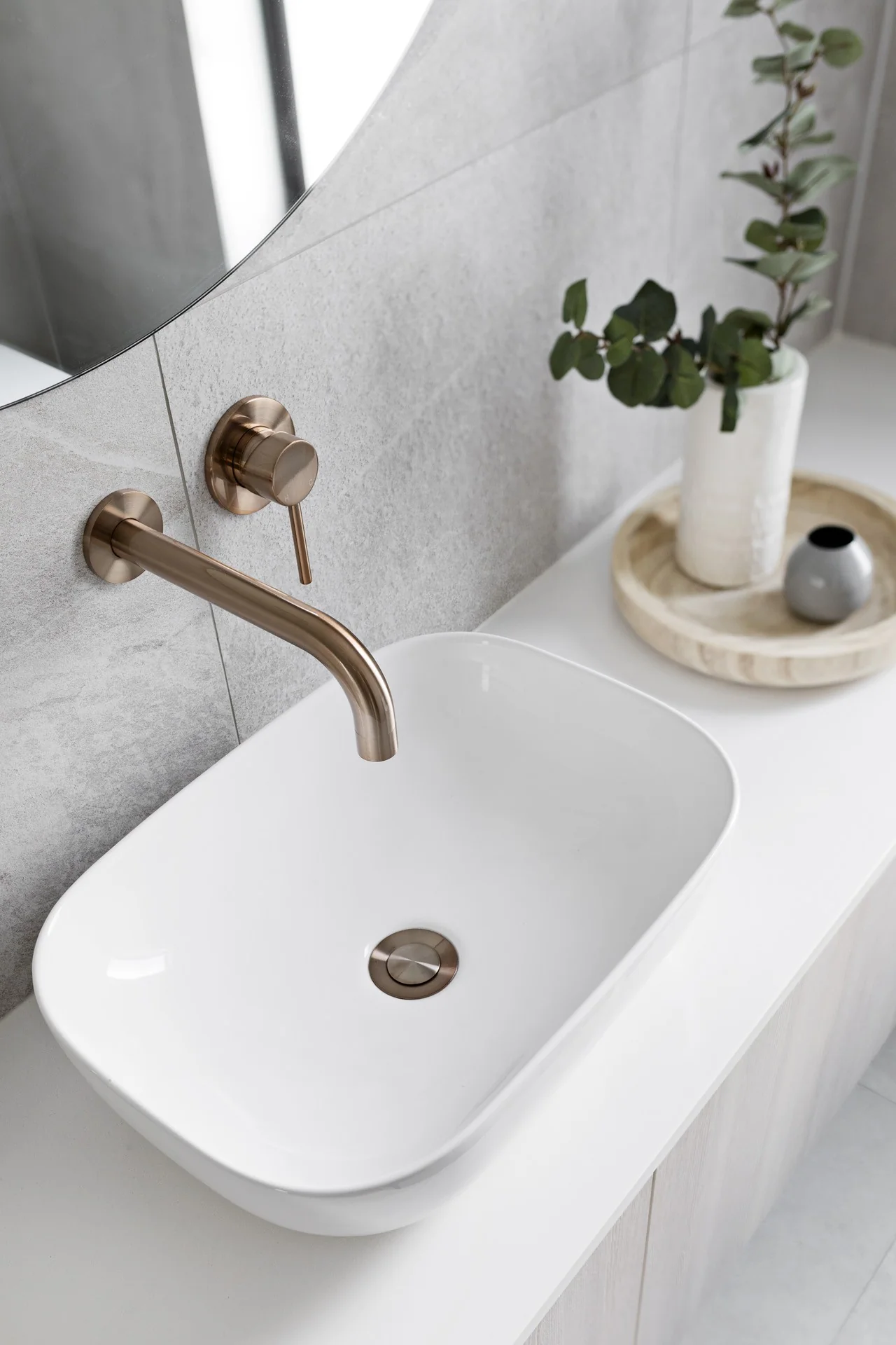 De rosé gouden wanduitloop met rond design is door zijn minimalistische ontwerp en lengte perfect te combineren met een waskom of wastafel. Deze gebogen uitloop is te plaatsen in een muur of wand. Voor het regelen van de temperatuur en waterstraal, combineer je de uitloop met een mengkraan of knoppenset.